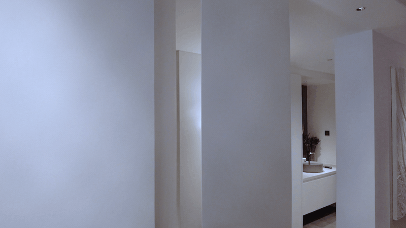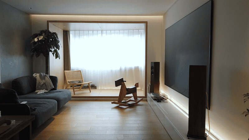 客堂布景墙大量的留白,并采用线型灯光和间接光!